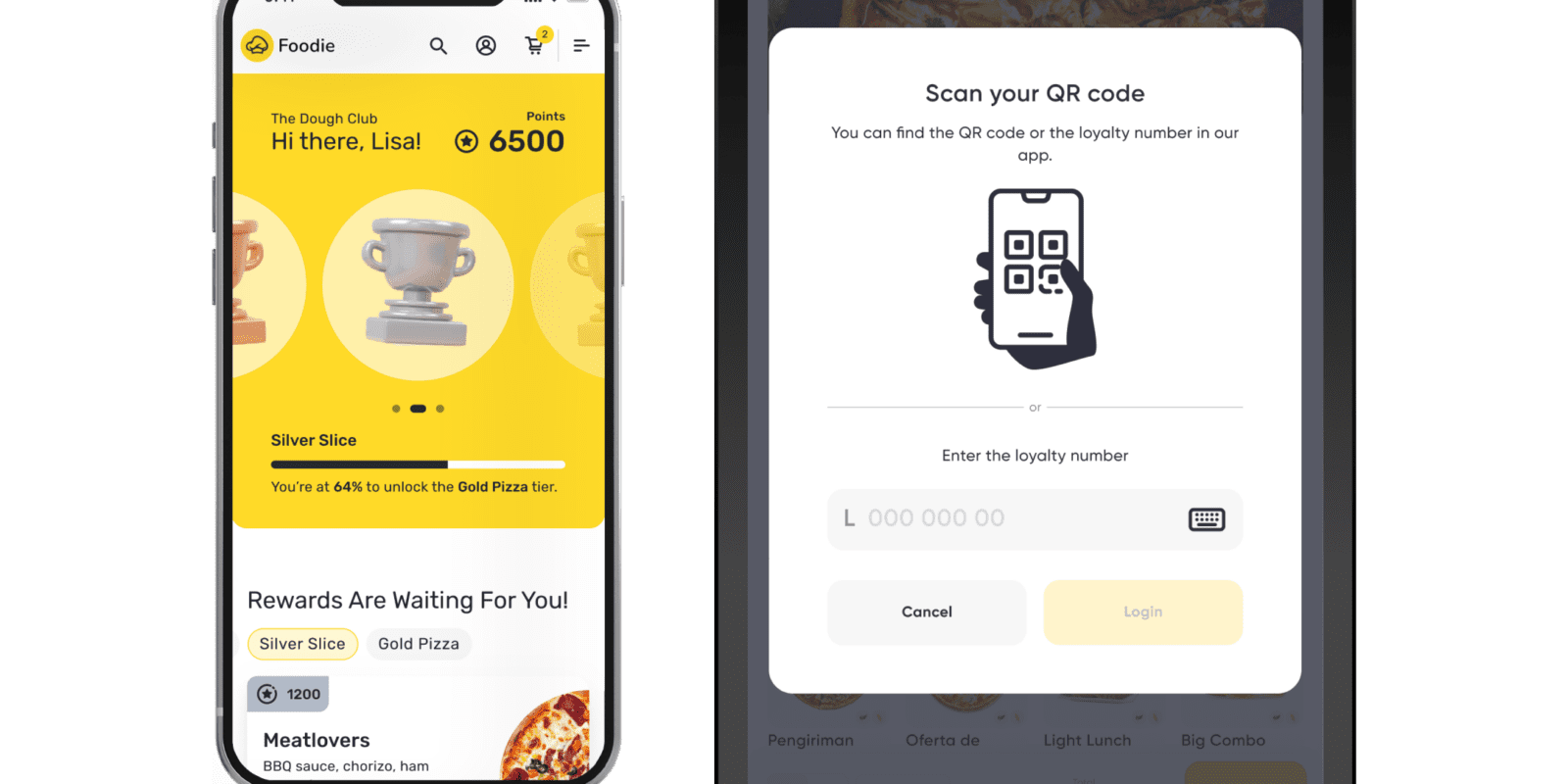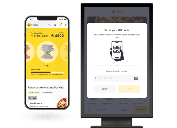 Customers can log into their loyalty account at the kiosk by scanning a QR code from the app or entering their identifier code. Points are earned automatically, loyalty rewards are redeemable directly in the order flow, and member-exclusive products are visible and accessible. Every kiosk visit becomes a loyalty touchpoint, letting the customer benefit without additional guidance.