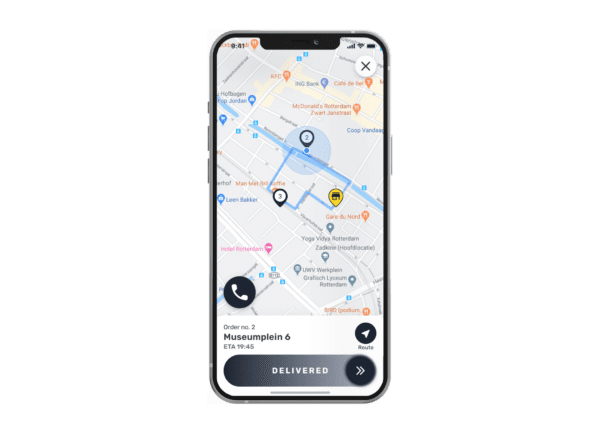 Our Driver App is optimized so that delivery drivers can easily use it on normal mobile phones. The battery usage is comparable with common navigation tools, such as Google maps.