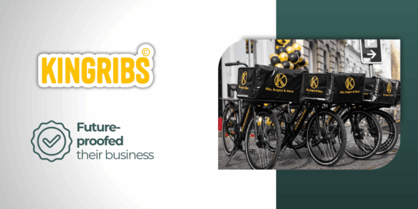Kingribs success case visual showing branded delivery bikes and restaurant operations